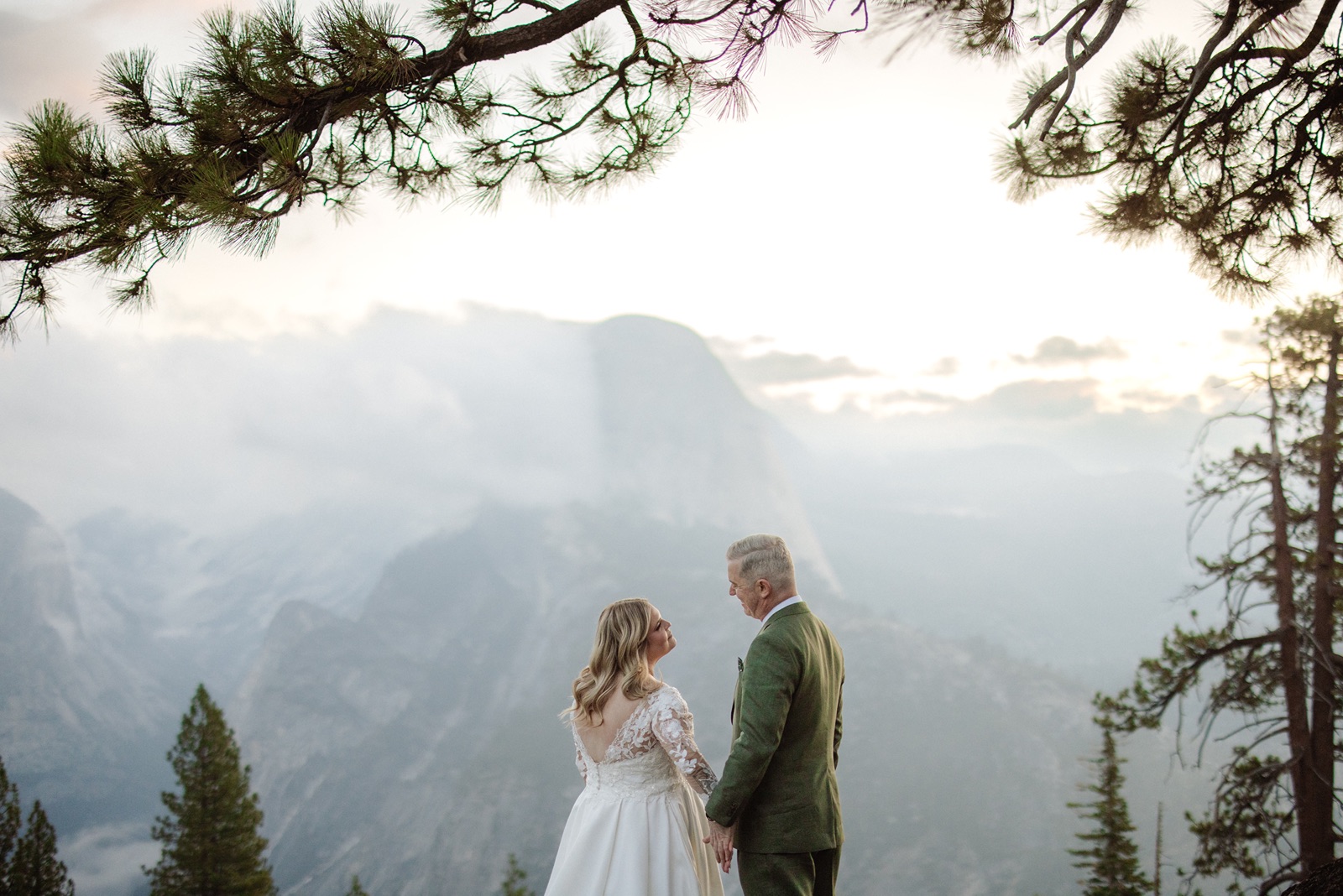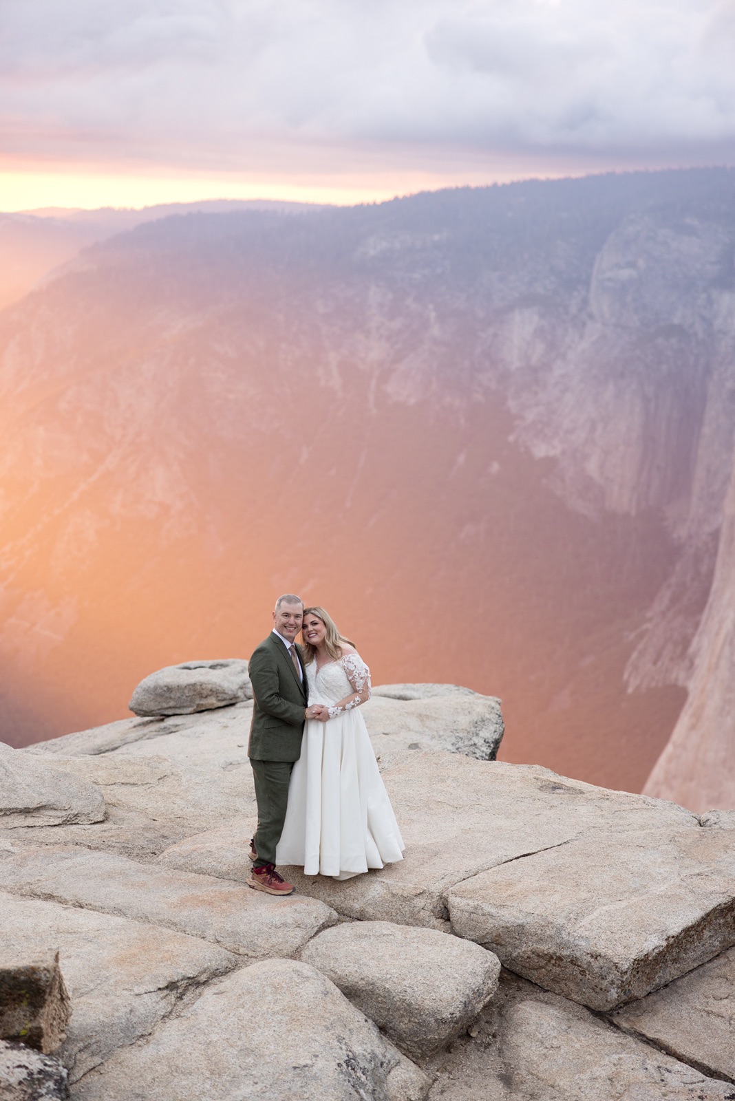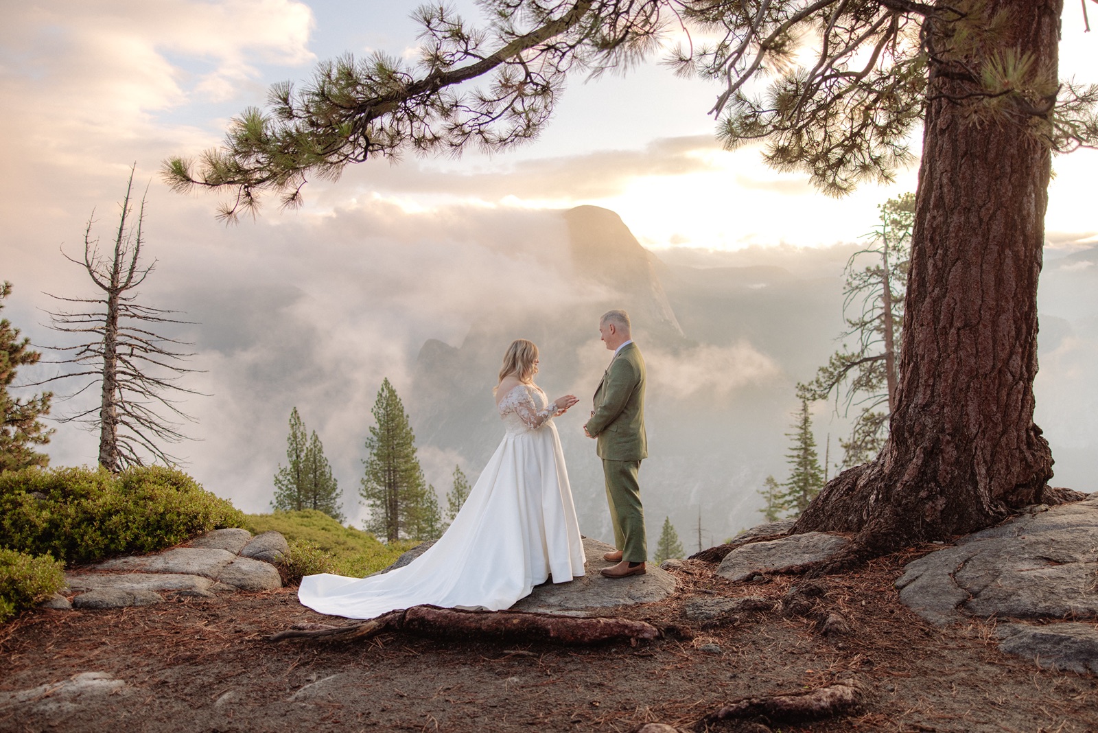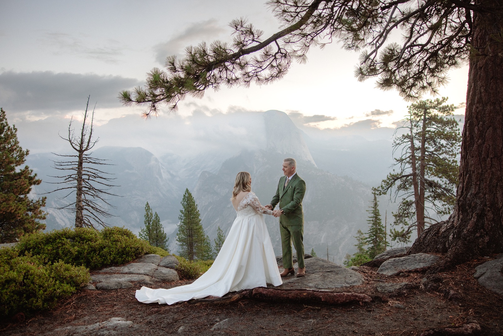 We began before sunrise at Glacier Point. The overlook was still and quiet, and the valley below was covered in clouds that turned into soft morning light. Amanda and Grant wanted the morning to be just for the two of them.