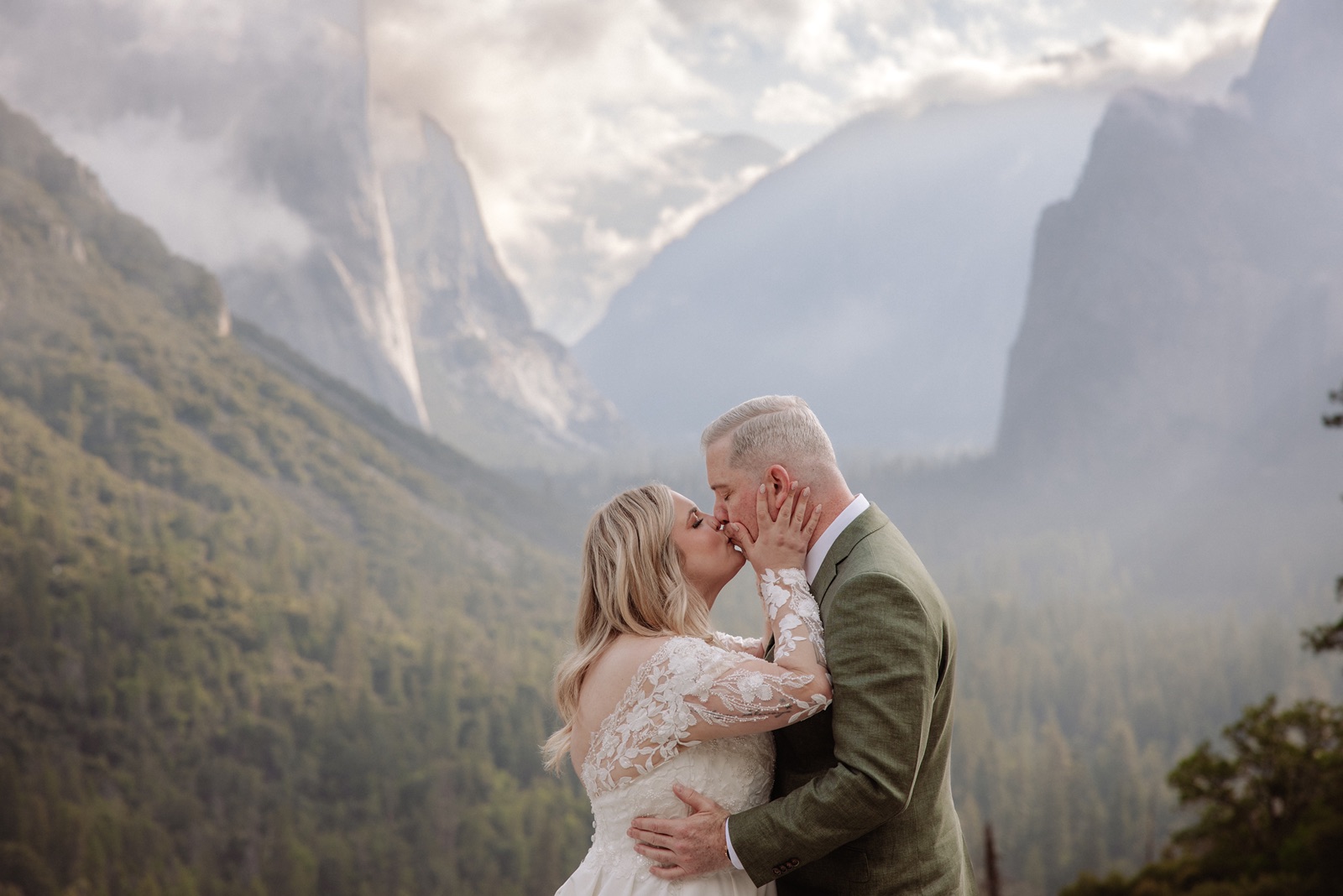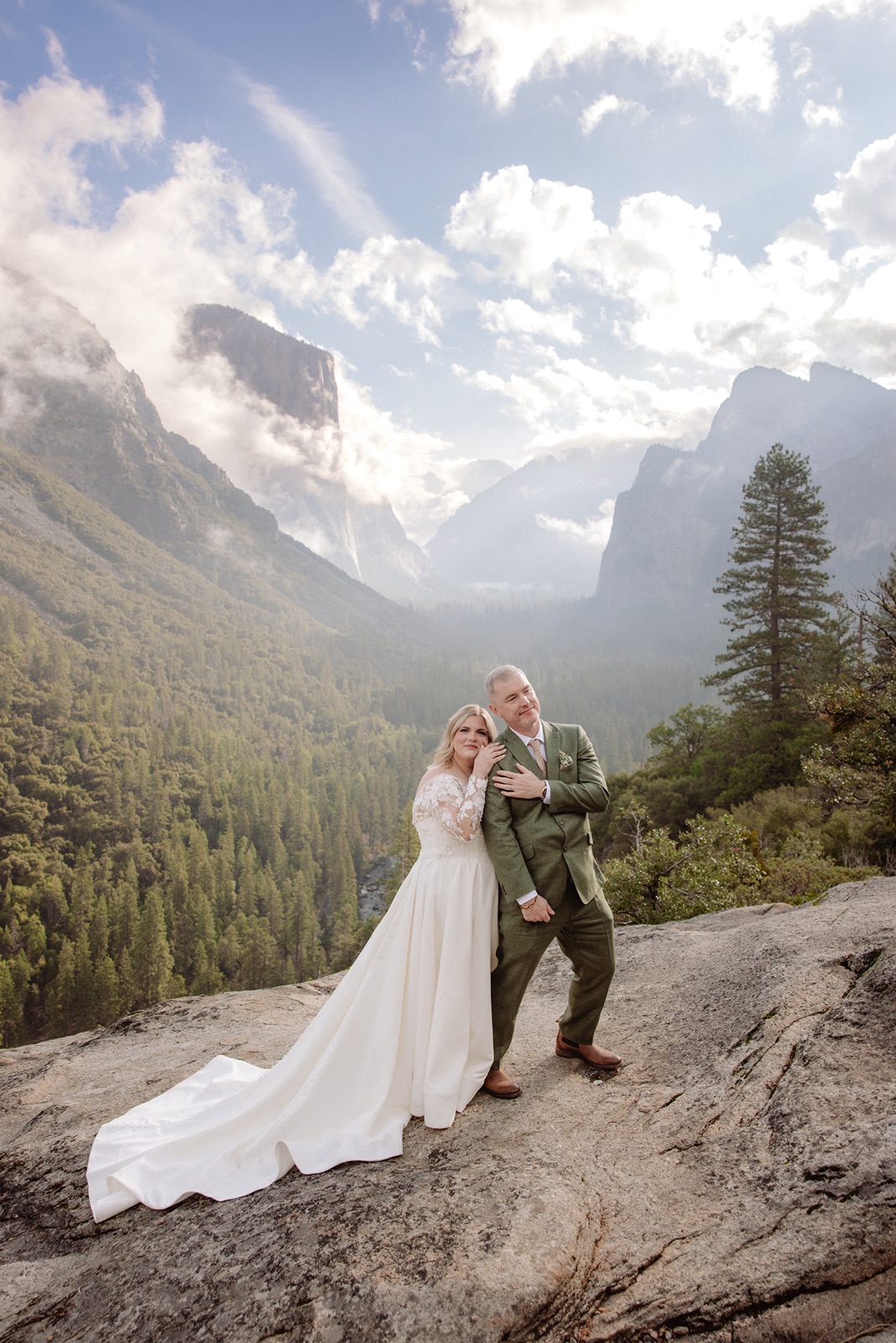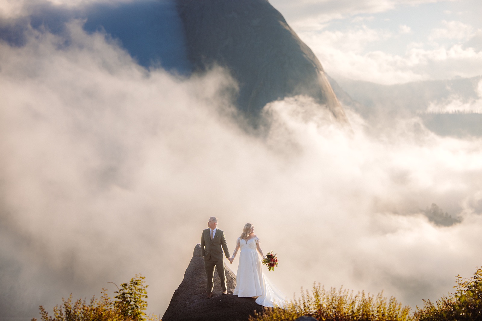 We began before sunrise at Glacier Point. The overlook was still and quiet, and the valley below was covered in clouds that turned into soft morning light. Amanda and Grant wanted the morning to be just for the two of them.