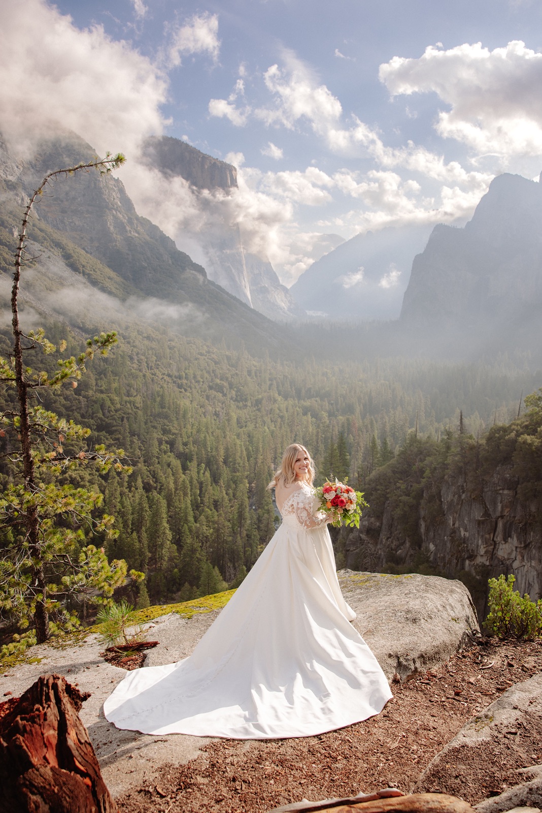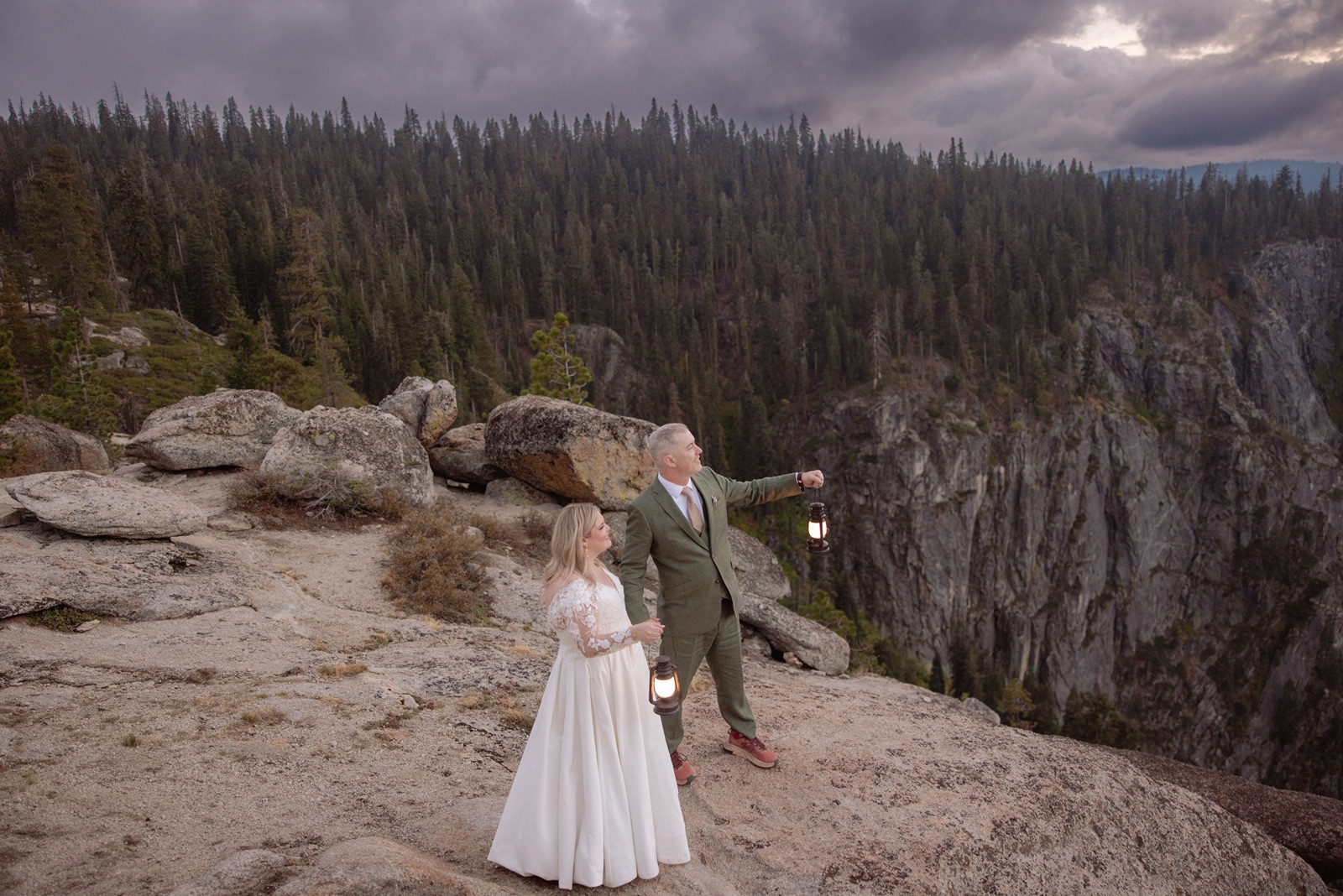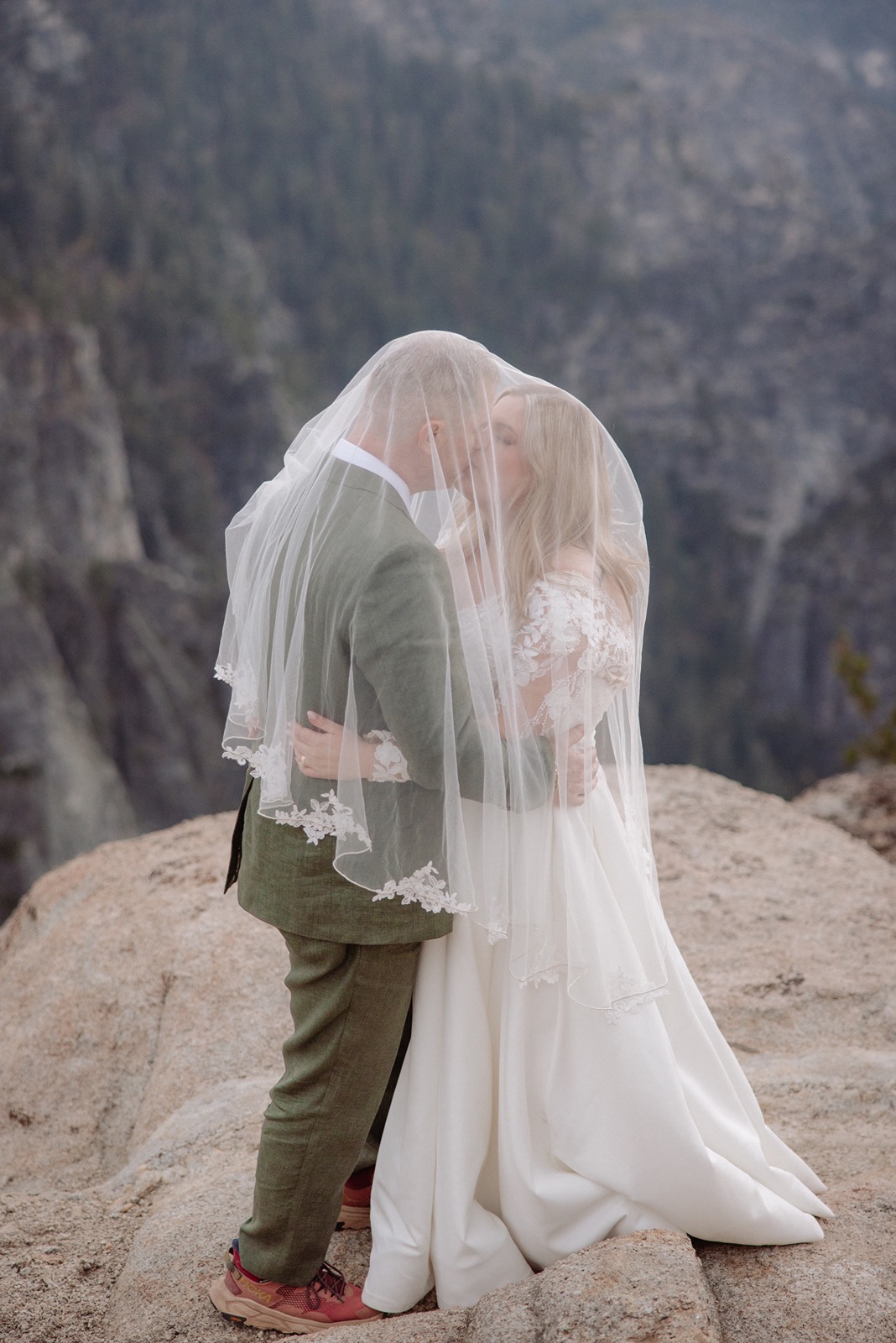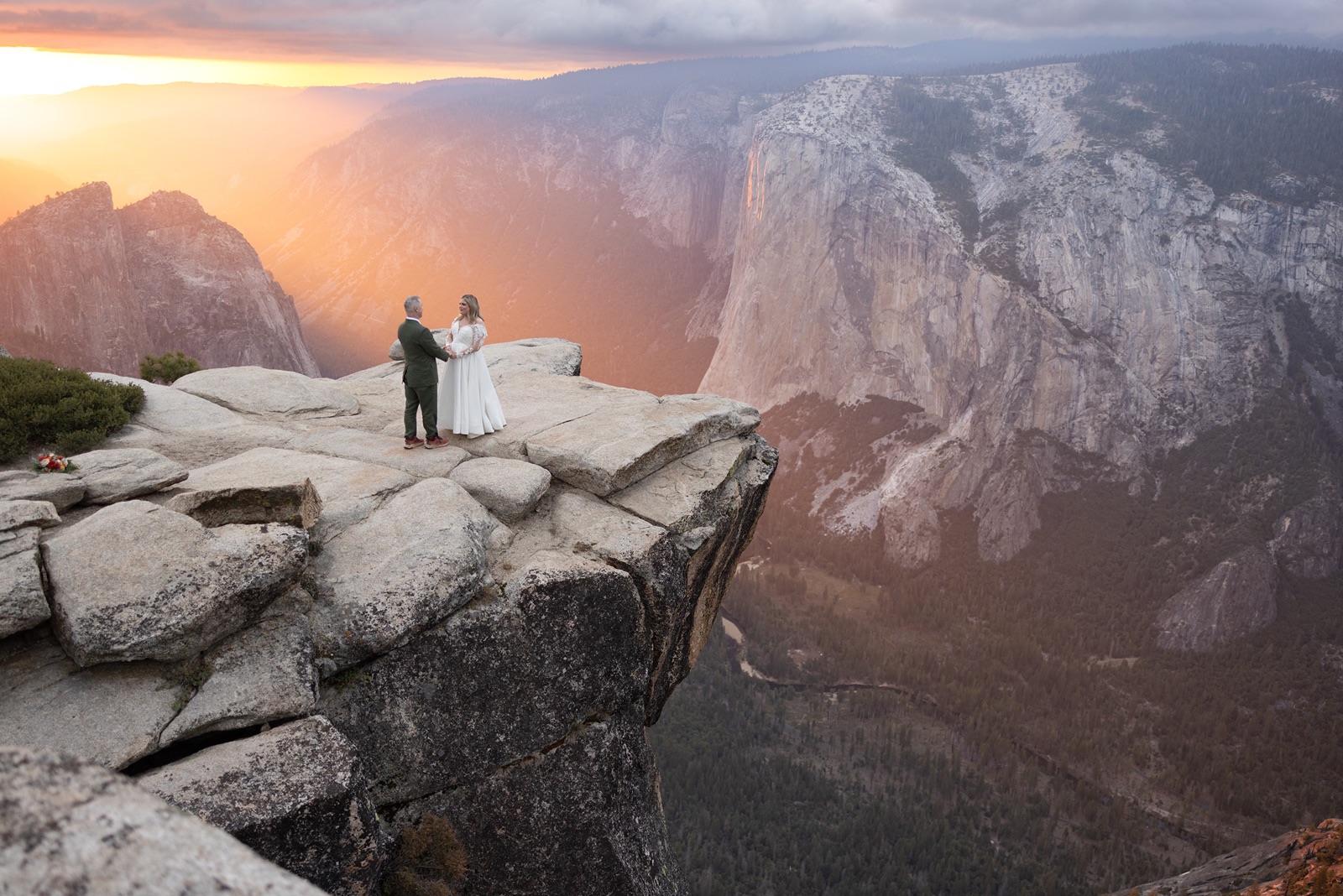 We began before sunrise at Glacier Point. The overlook was still and quiet, and the valley below was covered in clouds that turned into soft morning light. Amanda and Grant wanted the morning to be just for the two of them.