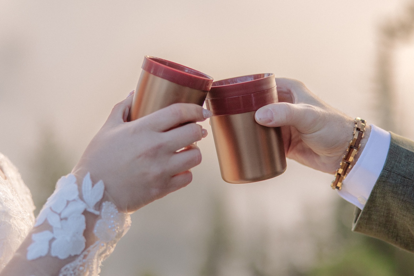 They shared a first look, then exchanged private vows with the sun coming up behind the cliffs. That calm, slow start set the tone for the entire day. It gave them space to breathe and enjoy the moment before meeting up with their family later.