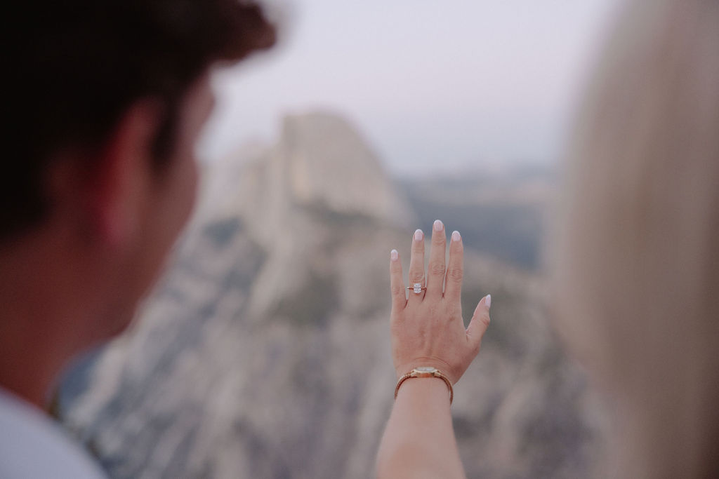 After the surprise, we explored Taft Point for some golden-hour portraits. The light that evening was unreal soft, warm, and perfect for capturing that just-engaged glow. We wrapped up at Glacier Point, for a few more portraits as the sun dipped behind the valley!
