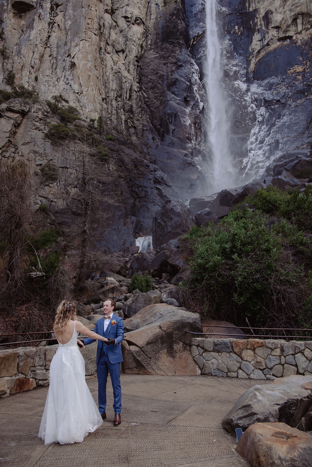 This location is easy to access and perfect for couples who want a classic Yosemite waterfall setting.