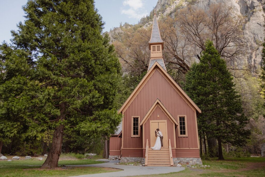 This location is perfect for couples who want a small ceremony or who like the idea of mixing classic architecture with Yosemite’s natural scenery. It’s a beautiful option for intimate weddings or portraits with a traditional feel.