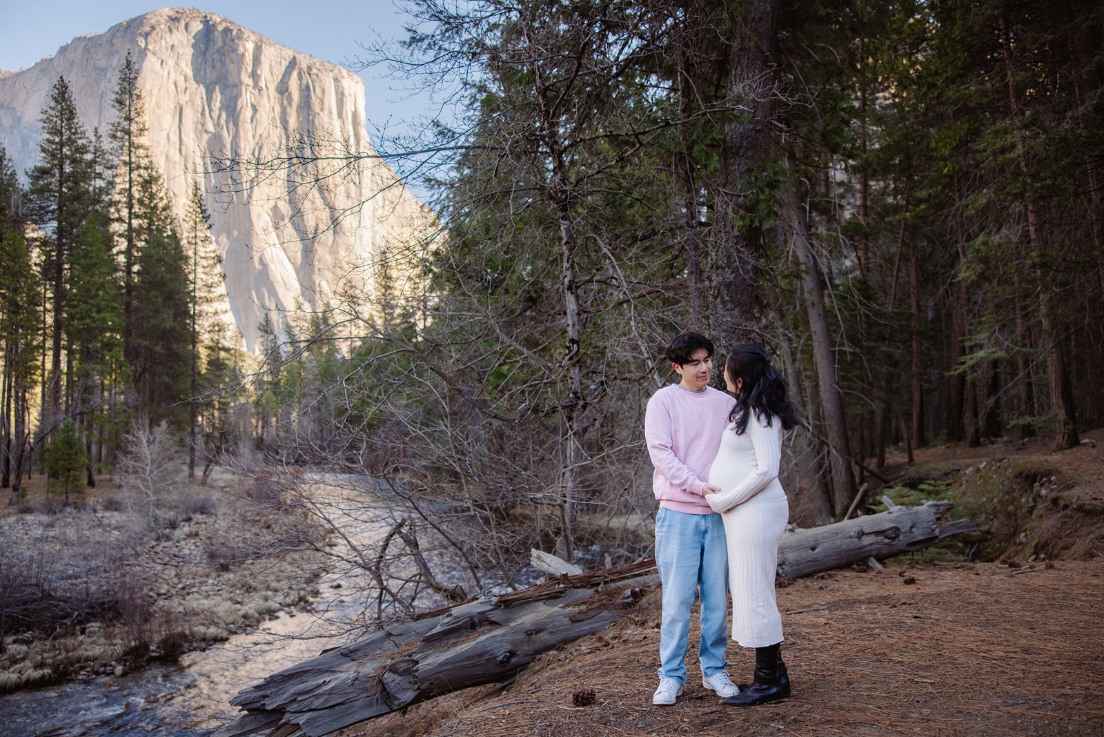 This location works well for relaxed portraits, especially if you want a classic Yosemite scene that includes both the river and one of the park’s most recognizable peaks.