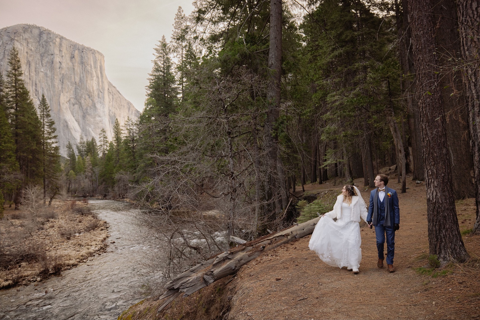 Because there are fewer visitors during the off season, it is much easier to enjoy this viewpoint without the heavy congestion that happens during summer. Sunrise and right before sunset are the best times for photos here. It works perfectly as an opening or closing location for a Yosemite elopement or photo session.