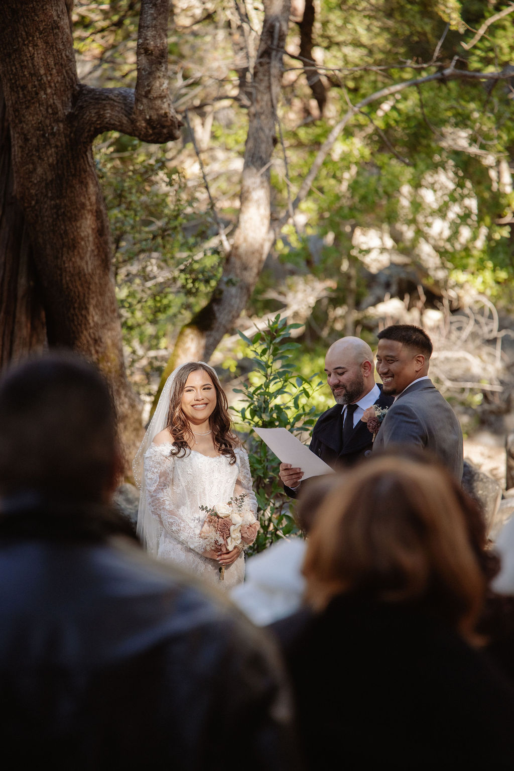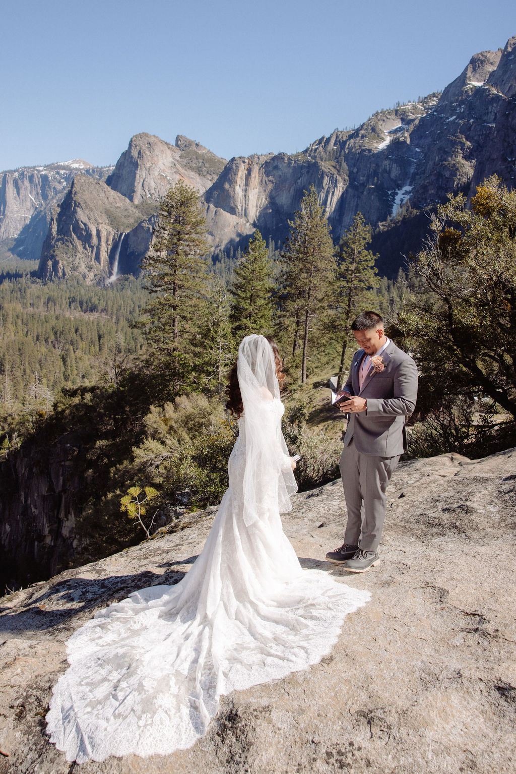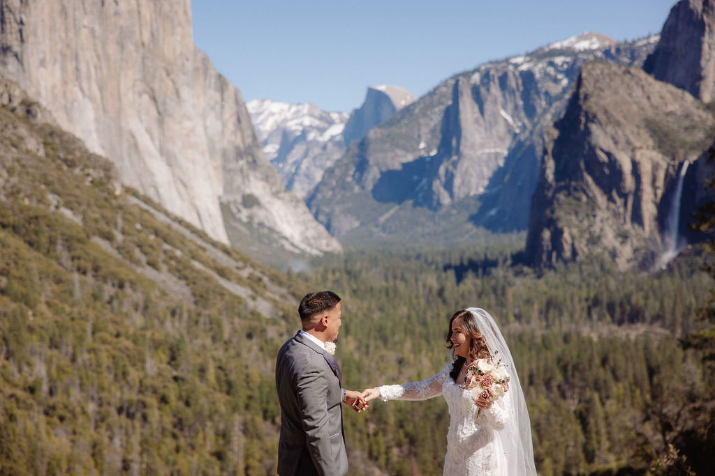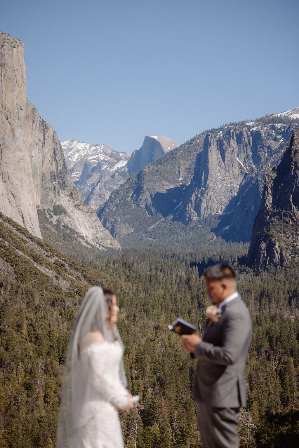 They met for their first look at Tunnel View, followed by private vows. This gave them a quiet moment together before the rest of the day.