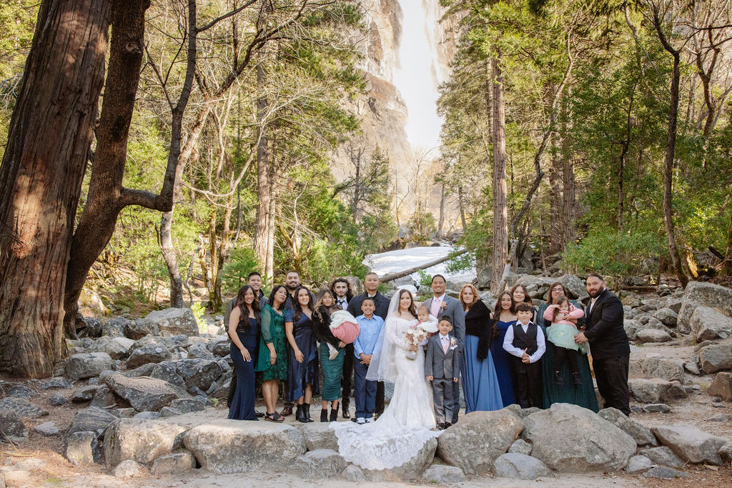 For couples who are not familiar with Yosemite, choosing locations can feel overwhelming. That’s where I step in! Based on their vision of wanting waterfalls, trees, and a mix of iconic and quieter spots, I guided them through location options that made sense logistically and visually. It ended up being a day that felt cohesive and easy to move through, even with multiple stops and a group of 25 people.