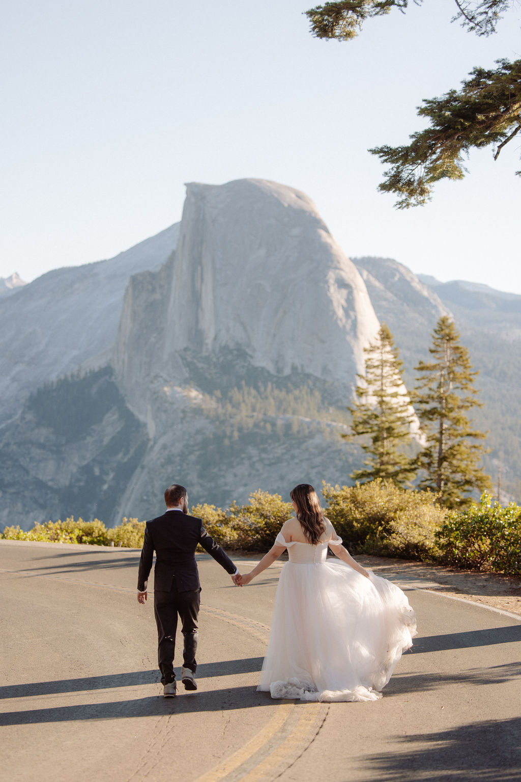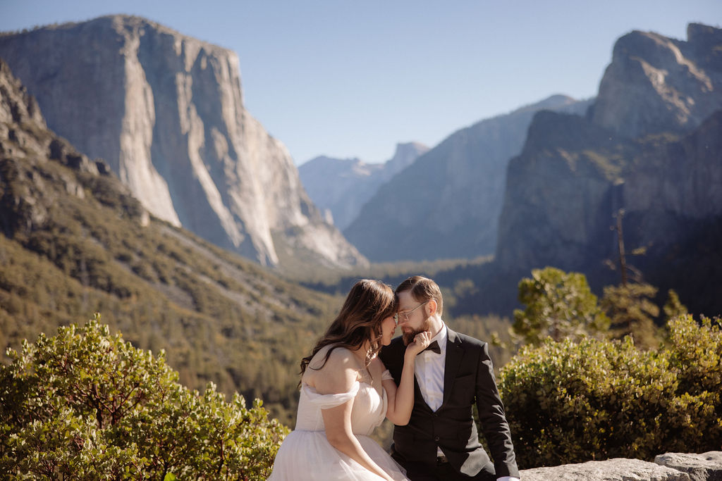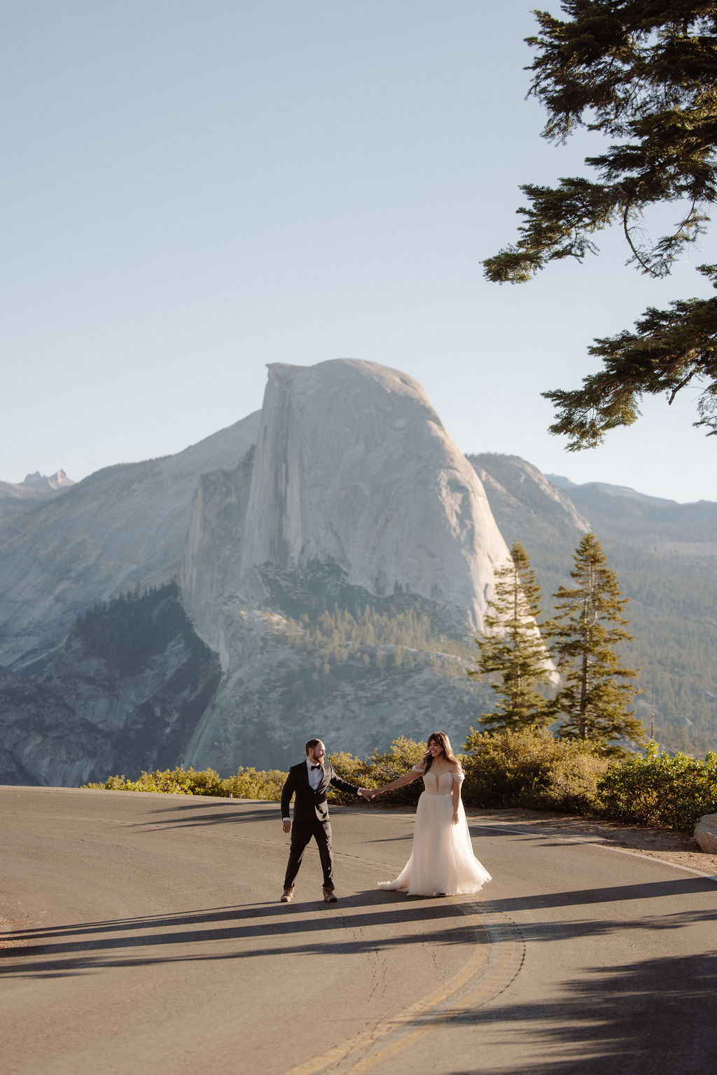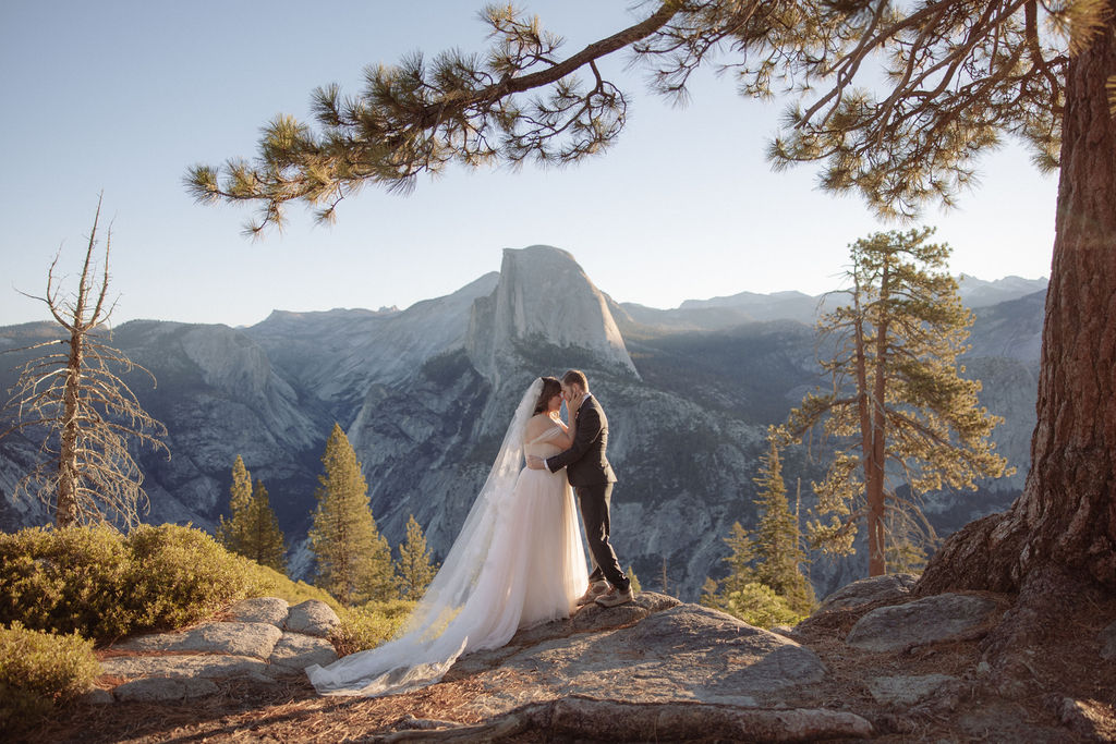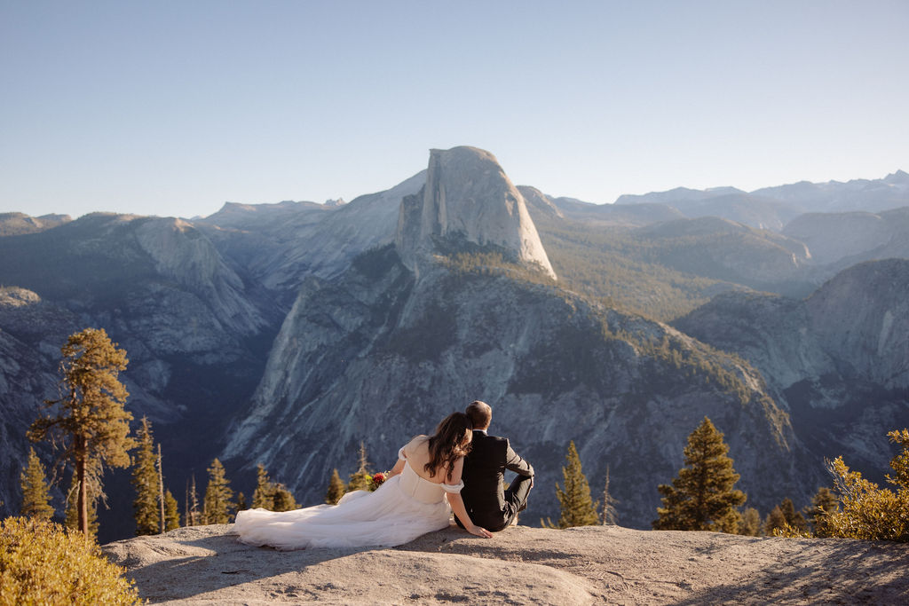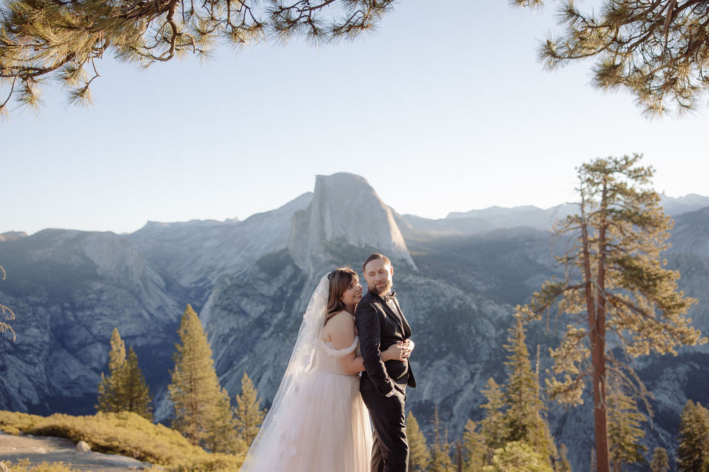 After their vows, we stayed around Glacier Point for portraits. The light was soft, the views were wide open, and everything felt unhurried. This part of the day gave them time to settle into being married before heading out to explore more of the park.
