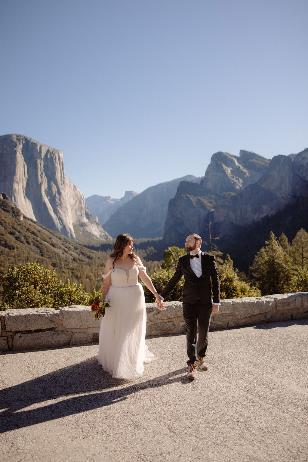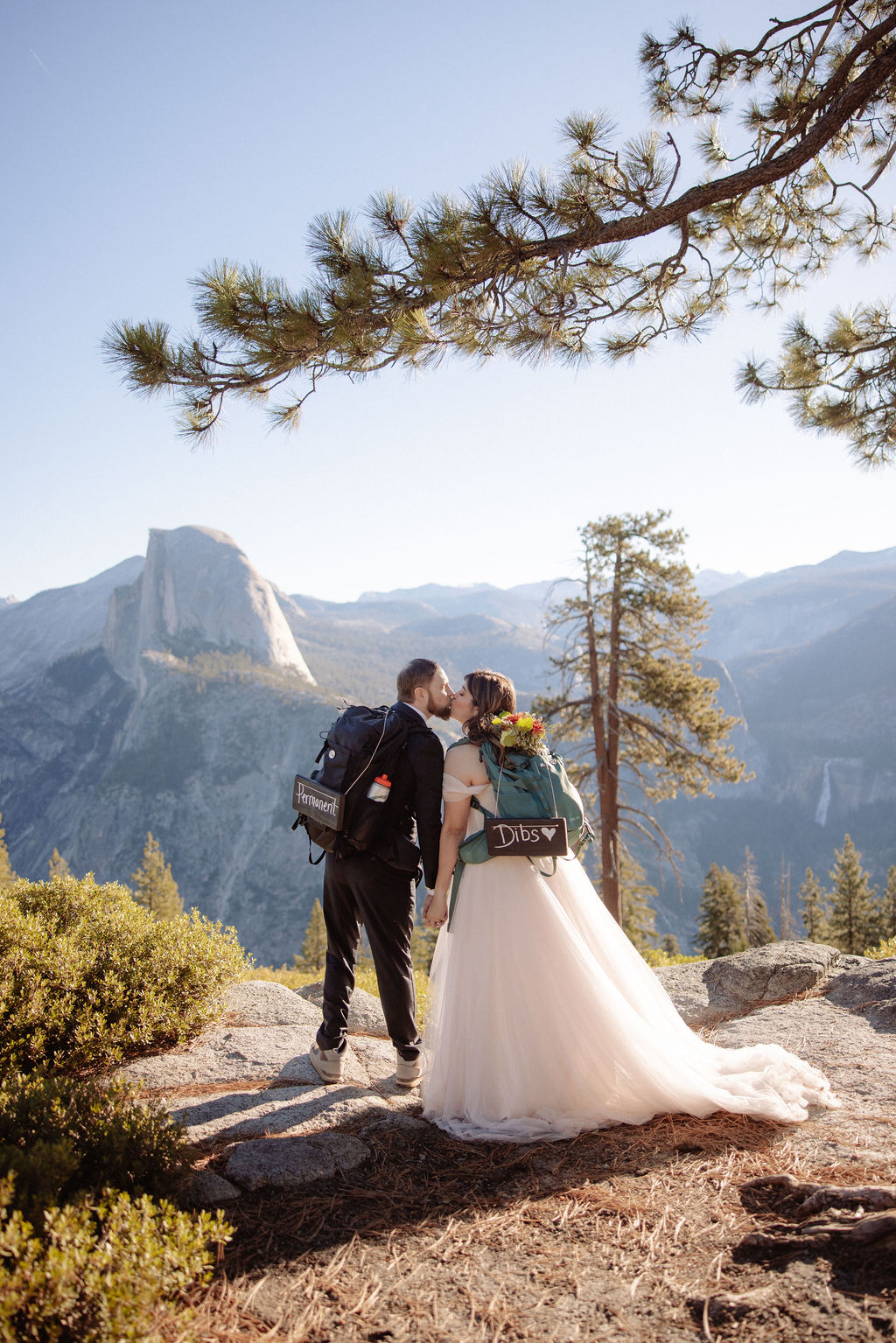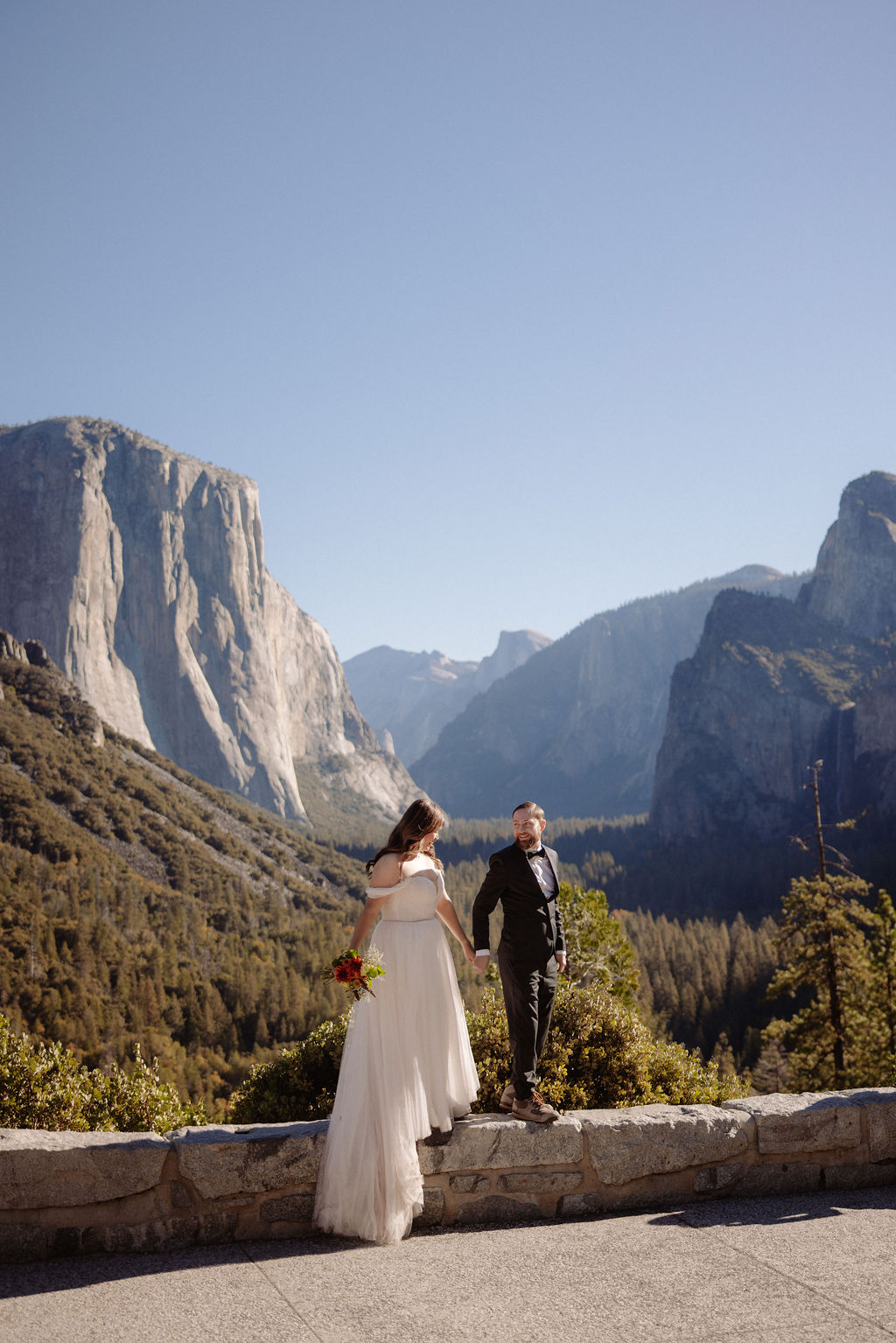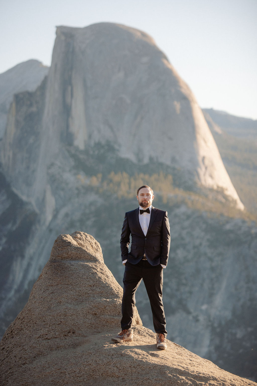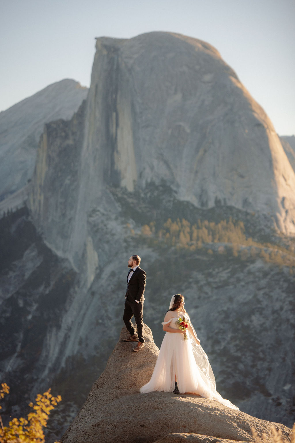 After their vows, we stayed around Glacier Point for portraits. The light was soft, the views were wide open, and everything felt unhurried. This part of the day gave them time to settle into being married before heading out to explore more of the park.