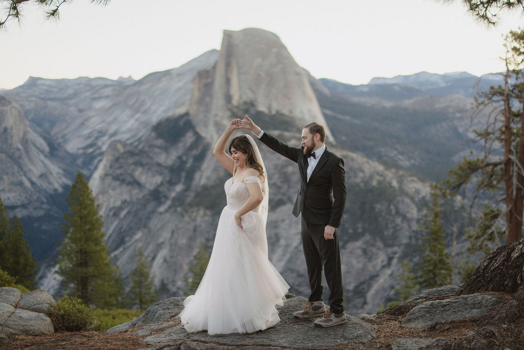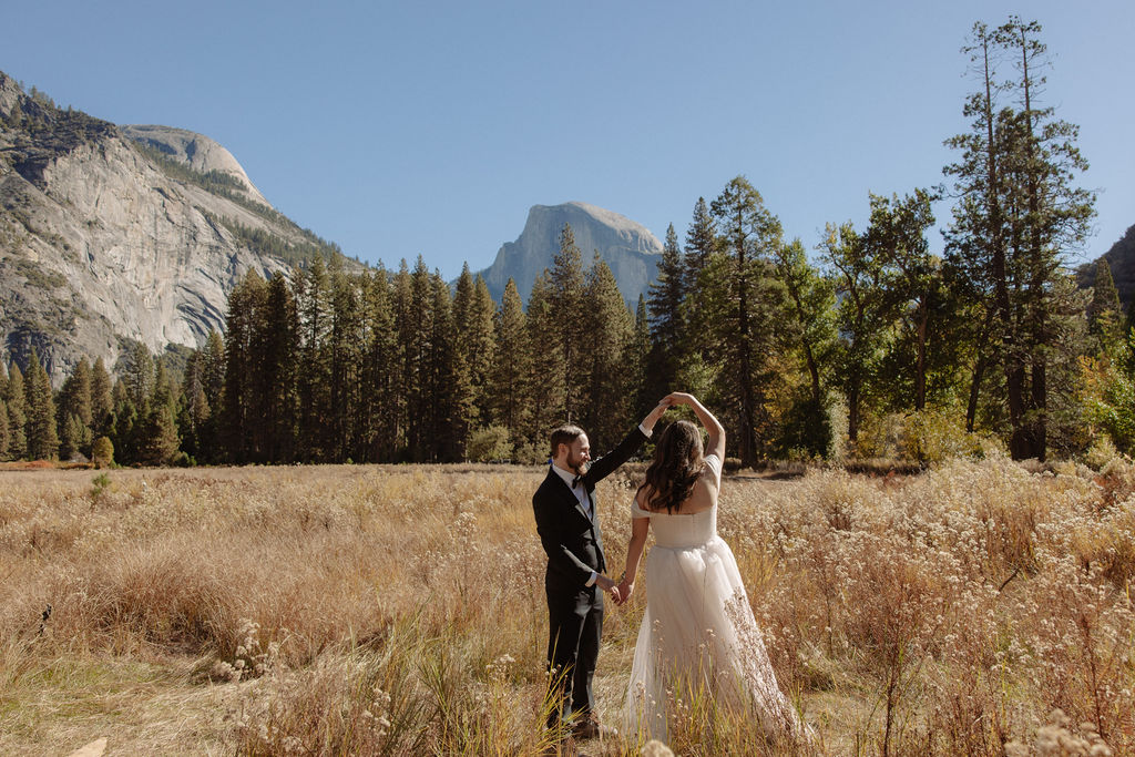 One of the most meaningful moments happened in Cook’s Meadow, where Russel and Noemi shared their first dance. Surrounded by open space and incredible views, it felt intimate and joyful at the same time. There was no audience, no pressure, just the two of them dancing together in the middle of Yosemite.