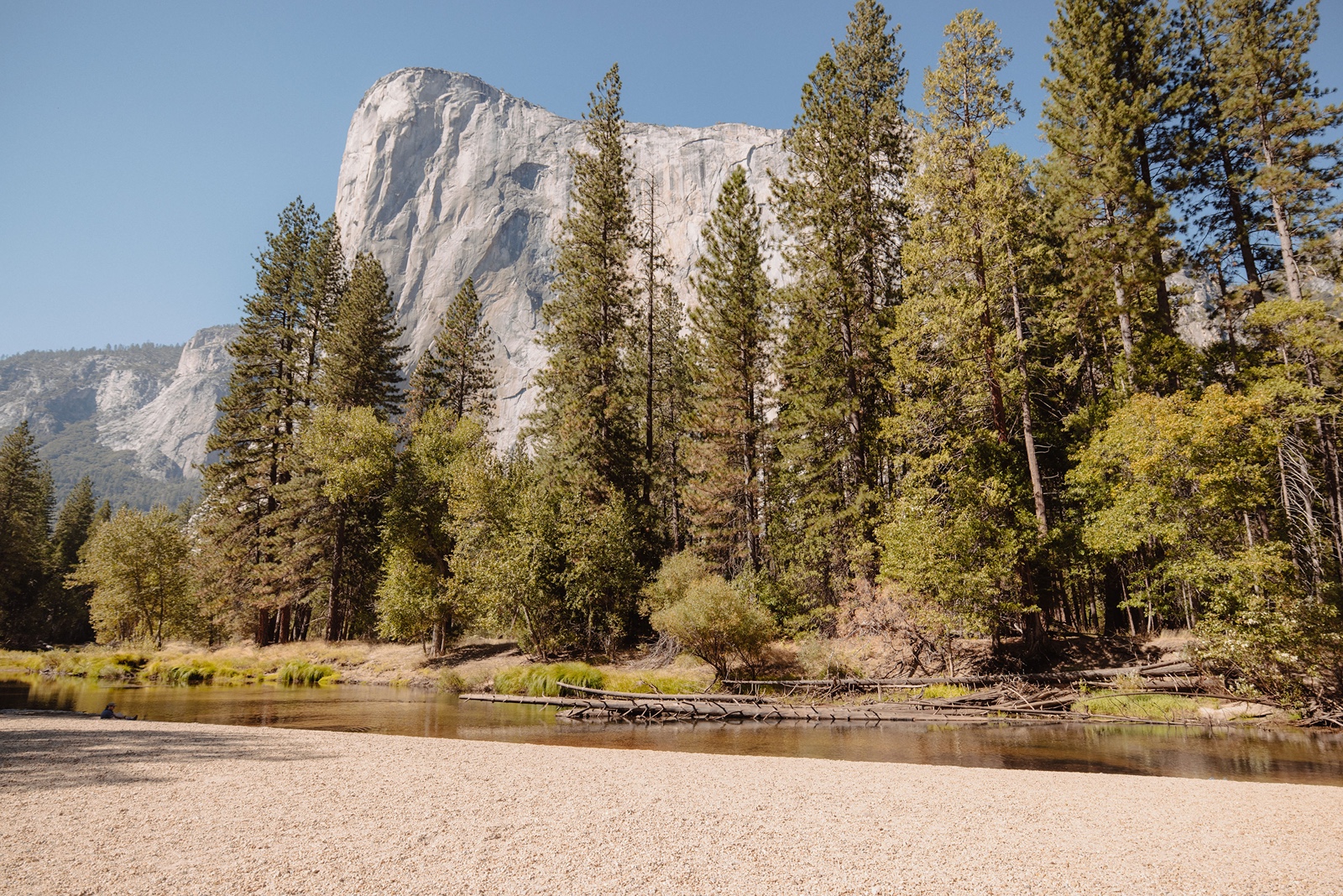 The Merced River runs alongside the beach and creates a calm and romantic setting. It feels a little removed from the busier parts of the valley.