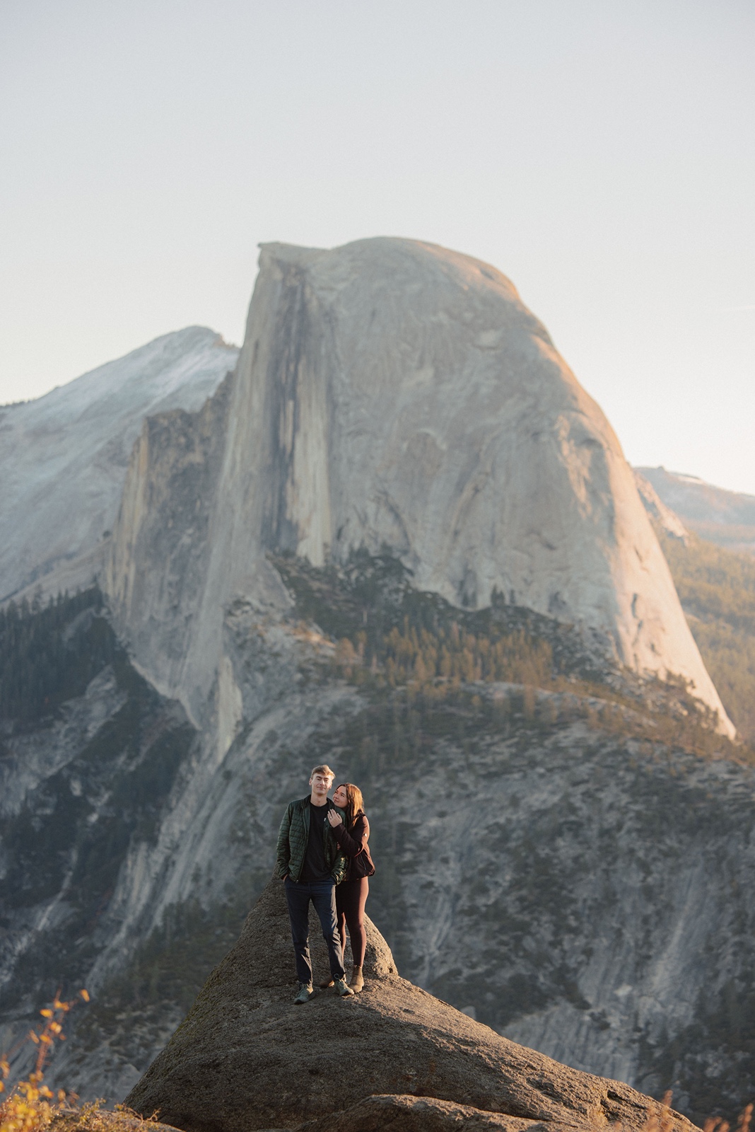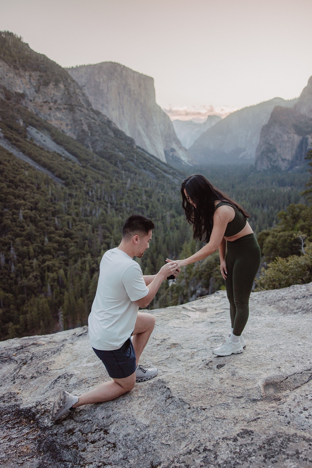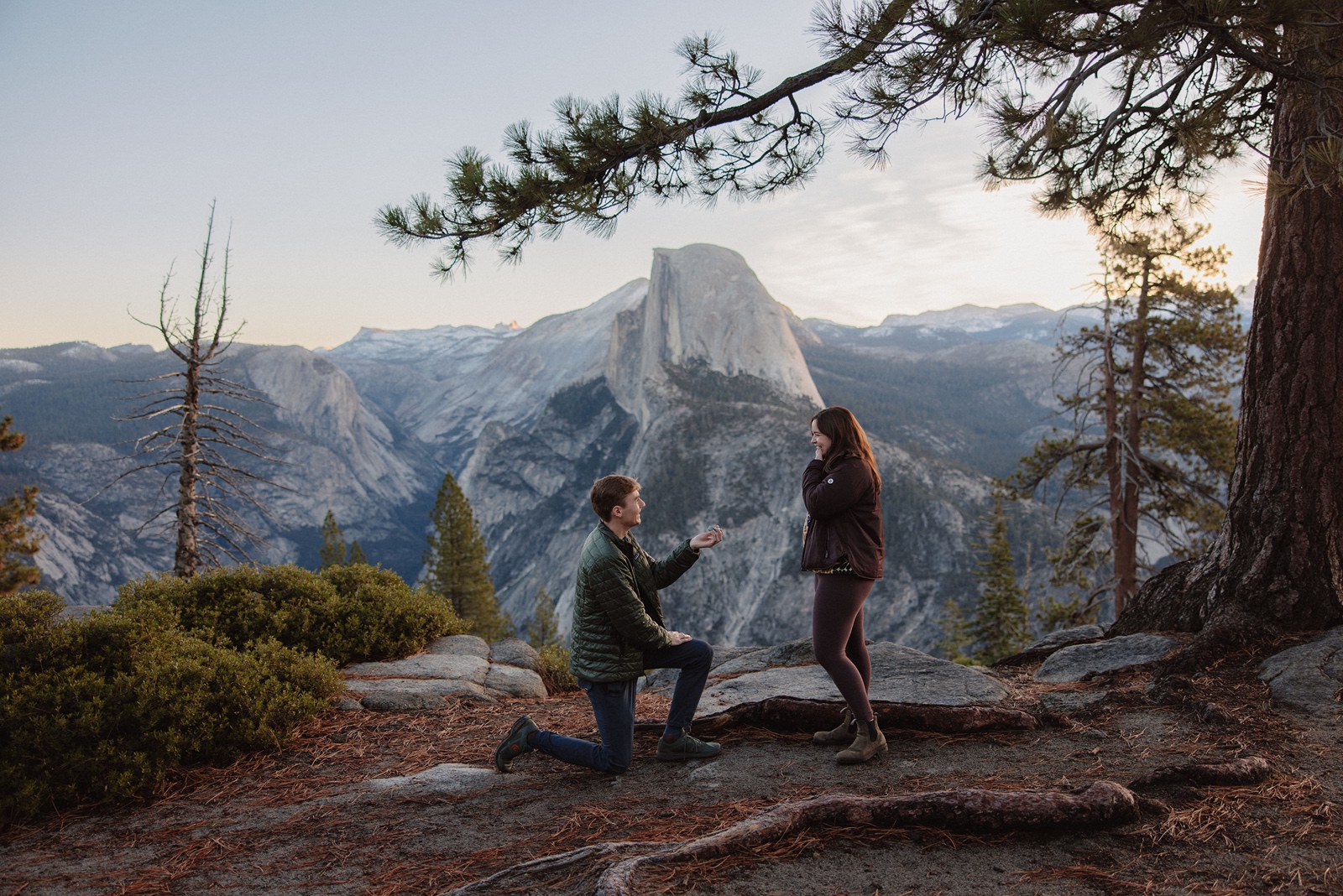 Sunrise here can feel incredibly peaceful, while sunset brings warm light across the granite cliffs. Both create a powerful setting for a proposal.