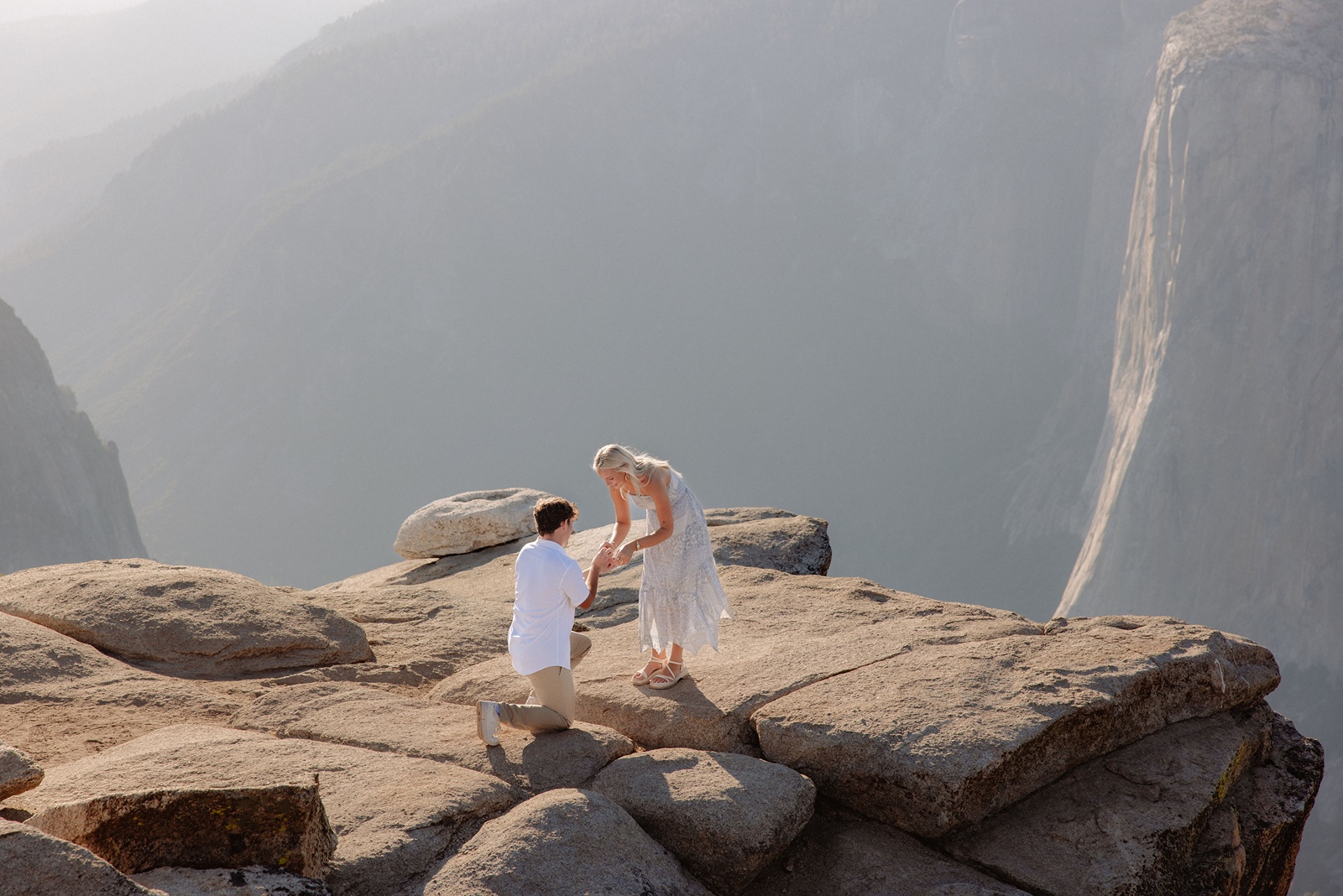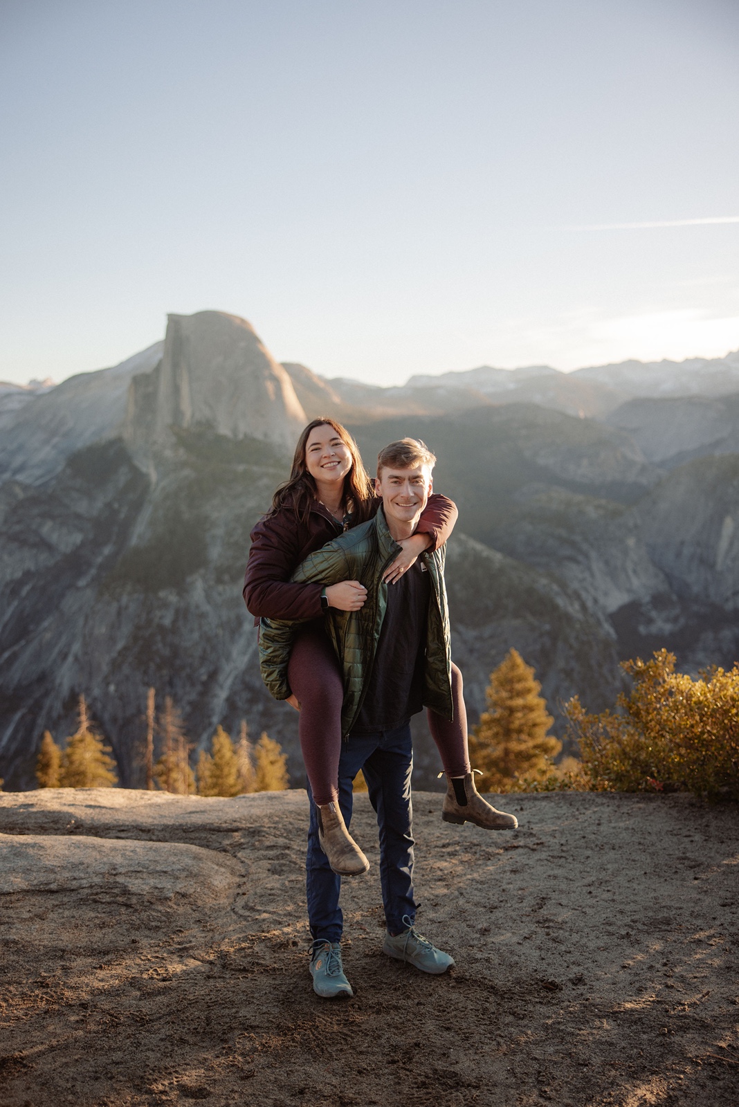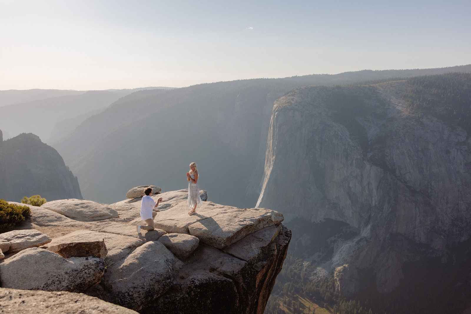 Sunrise here can feel incredibly peaceful, while sunset brings warm light across the granite cliffs. Both create a powerful setting for a proposal.