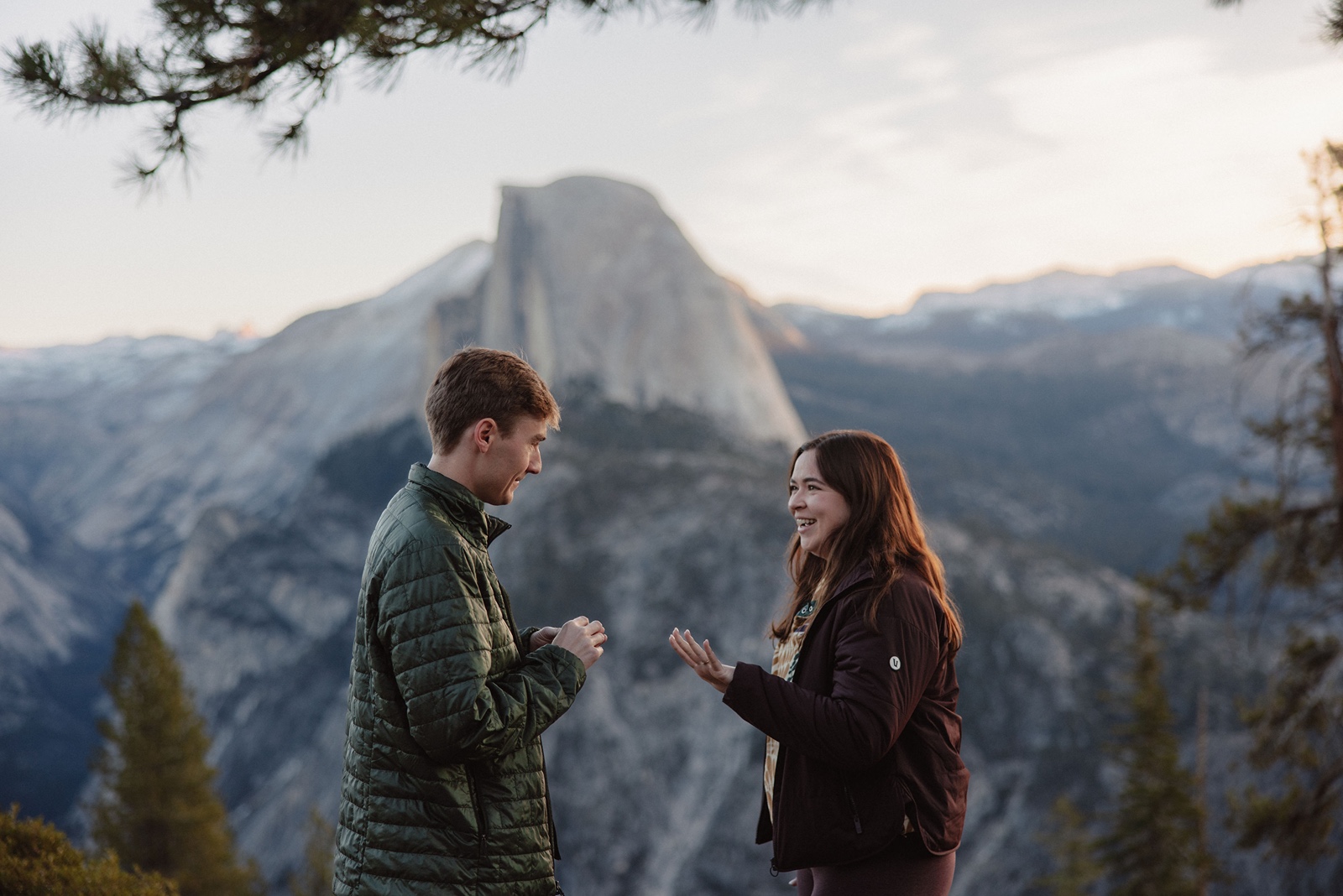Because it feels so vast and open, Glacier Point is perfect for proposals that feel cinematic and awe-inspiring. It’s also a great option if you want space to step away from the main viewing area and have a quieter moment together.