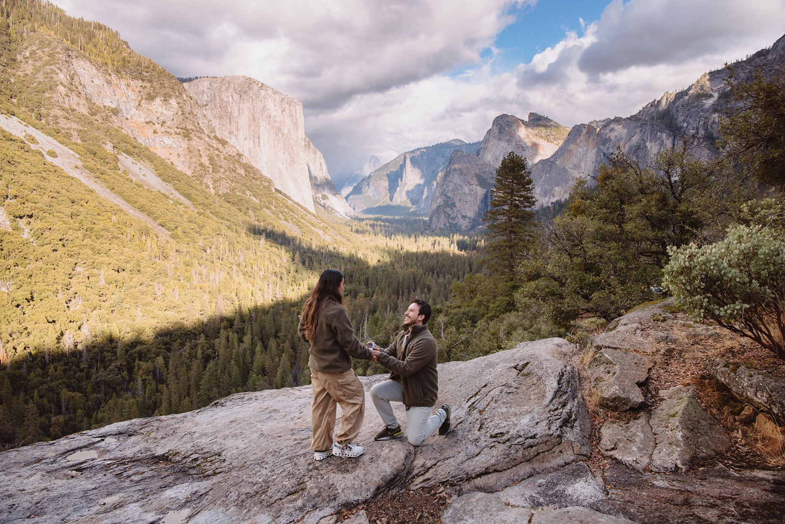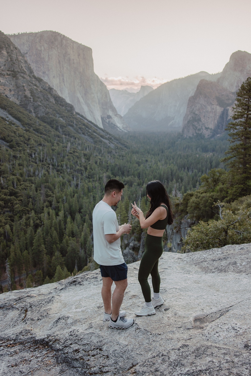 For proposals, this location works especially well if you want that instantly recognizable Yosemite backdrop. Many couples visit the viewpoint briefly before continuing deeper into the park, which makes it surprisingly easy to plan a proposal without drawing too much attention.