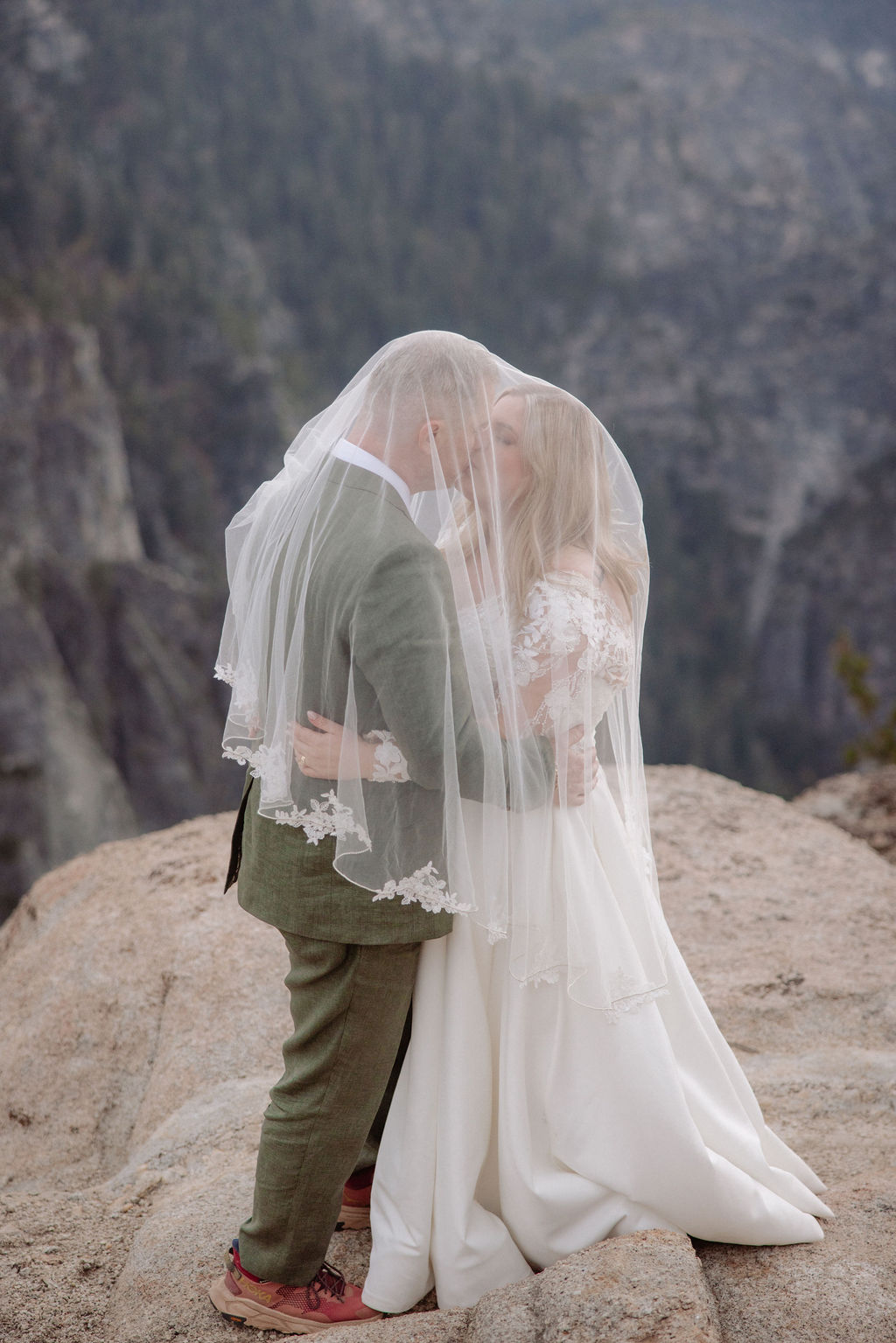 Here’s the truth. Weather changes are completely normal in Yosemite. They’re part of what makes the park feel alive. A cloudy forecast, fog rolling through the valley, or even a surprise storm doesn’t mean your day is ruined or off track. It just means your elopement is happening in a real mountain environment, not a styled shoot with controlled conditions.
