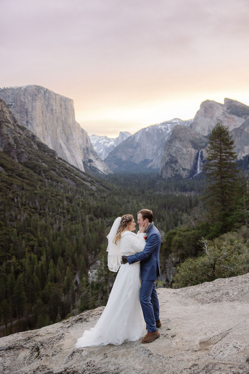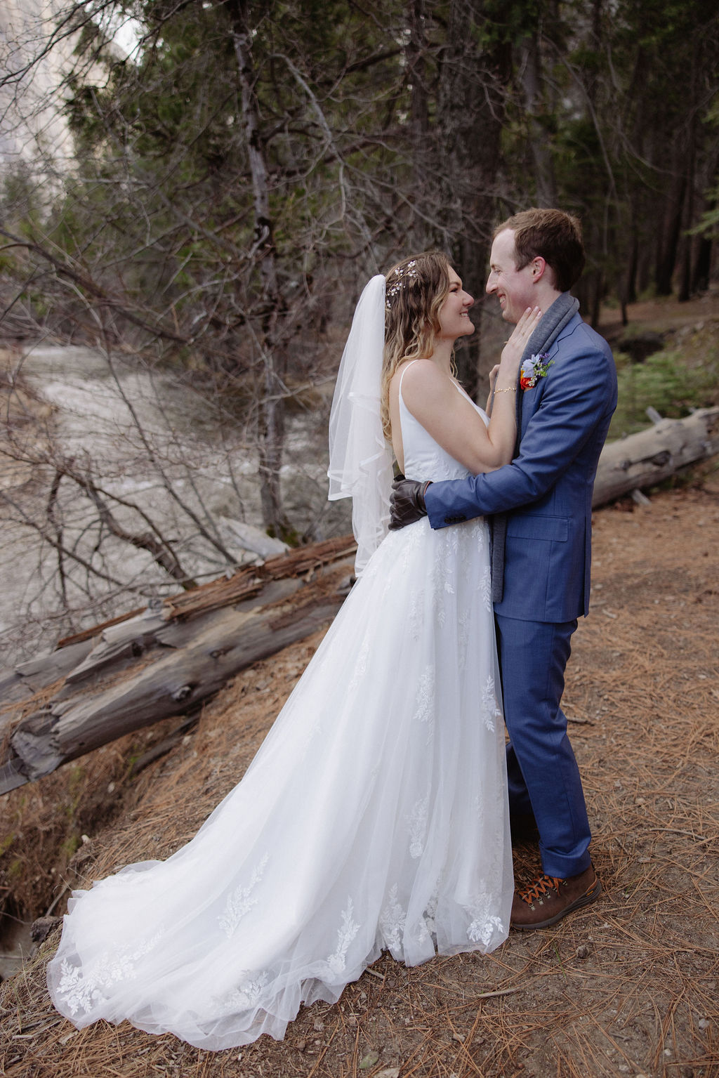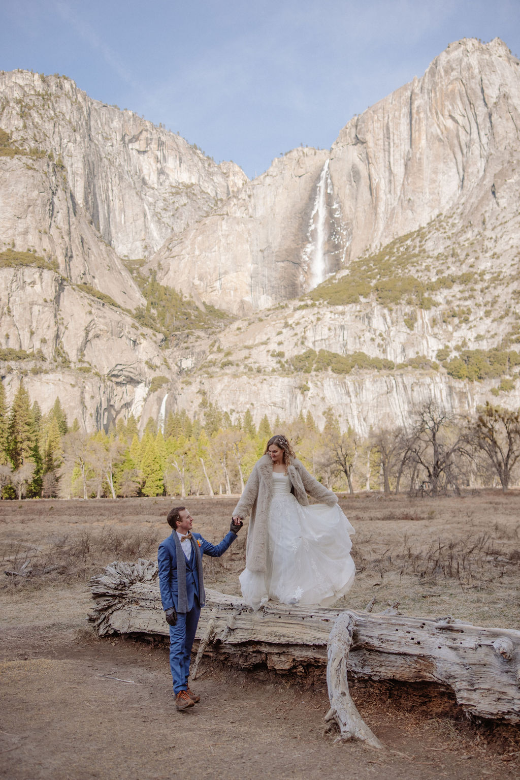 Their elopement took place in late January, which meant a slower winter pace, fewer crowds, and a quieter version of Yosemite. From a sunrise first look to a full afternoon hiking Upper Yosemite Falls, their elopement day shows how to create something meaningful, relaxed, and still physically adventurous.