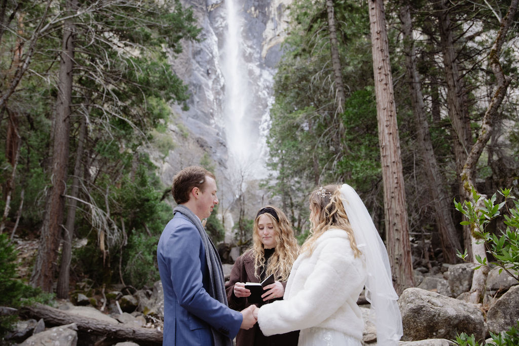 After sunrise, we made our way toward Bridalveil Fall for their ceremony. The waterfall was flowing steadily, and the mist in the air added to the atmosphere without being overwhelming.